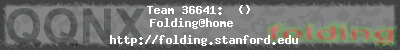 As most people already know, Quaque Nox (QQNX) runs a Folding @ Home team (Number 36641) that is ranked quite well. We are always looking to show our score and encourage others to join us, so we developed F@H Image, a simple script that generates a PNG based on what team number and username is provided. It was originally developed by gnx of Hashed.org and was expanded on by quad341 of quad341.com. The end result is a very versitile and easy to use script. It defaults to gnx on team 36641, but you can have it access anyone by making a like like http://quad341.com/folding?user=Quad341&team=36641 where you substitute your username in for Quad341 and your team number in for 36641. It also tries to find a png (set up for 400 x 50) of the teamnumber in that directory to use for the background or uses folding.png by default. Great in sigs for forums! If you would like to use the one hosted on quad341.com but would like your own team’s background, email me at quad341 at gmail dot com (making an email out of that) with the image attached (400*50) and your team number mentioned in the message and i would be happy to host it for you OR you can download the script and host it yourself. Released under the Creative Commons Attribution-NonCommercial-ShareAlike Liscense